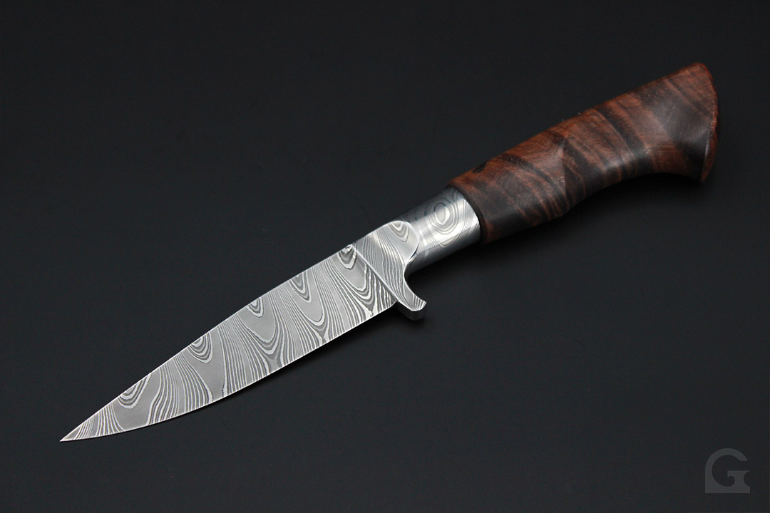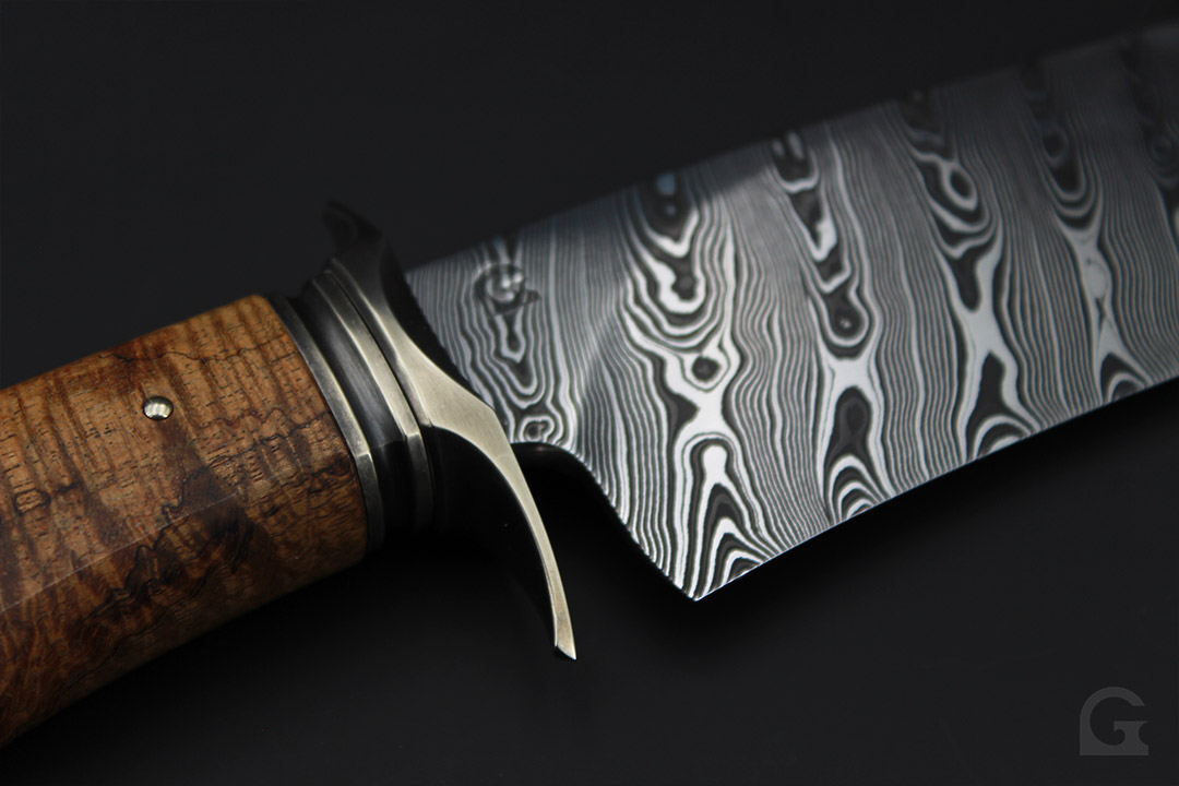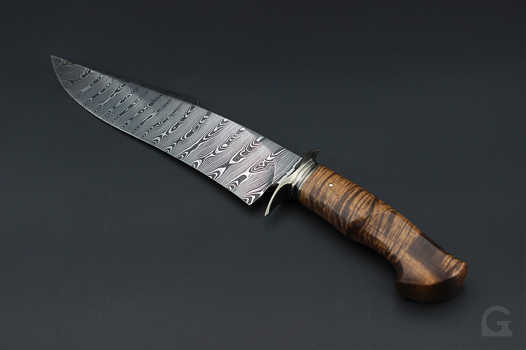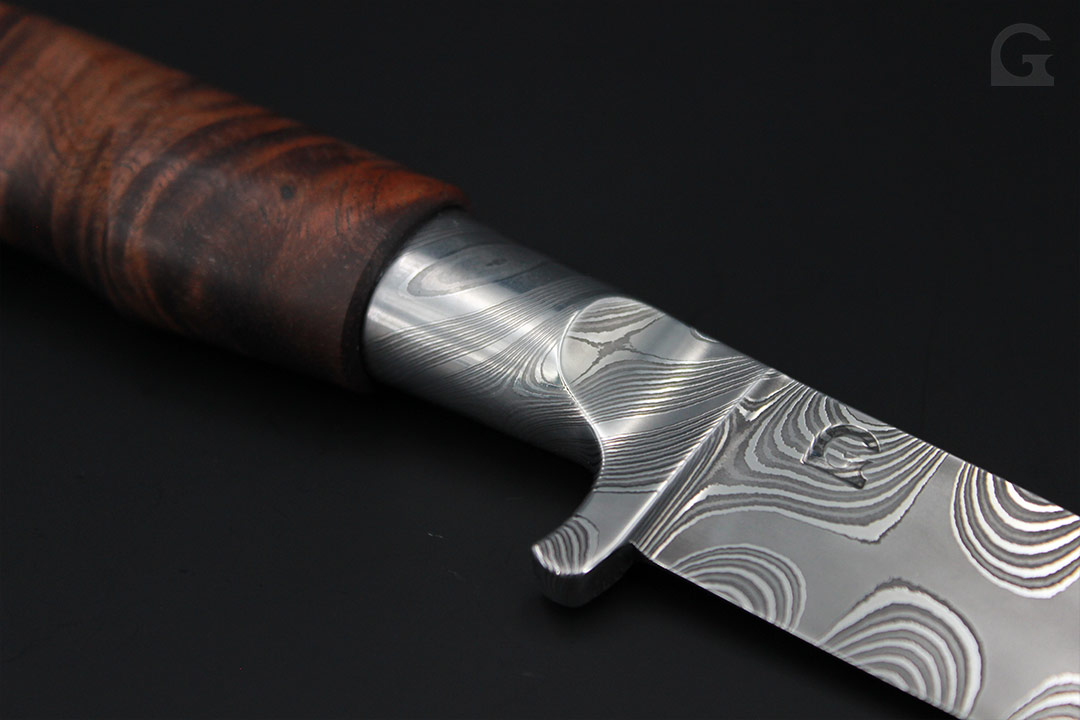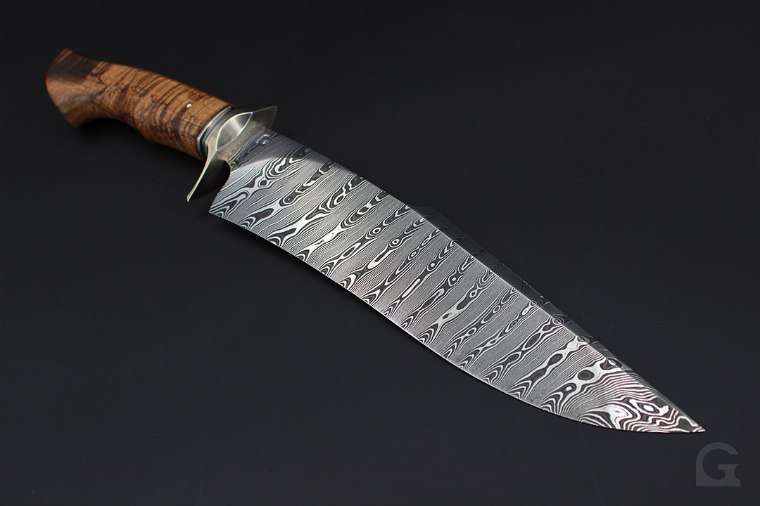 Damast • Buckeye Burl Griff • Neusilberfrontkappe