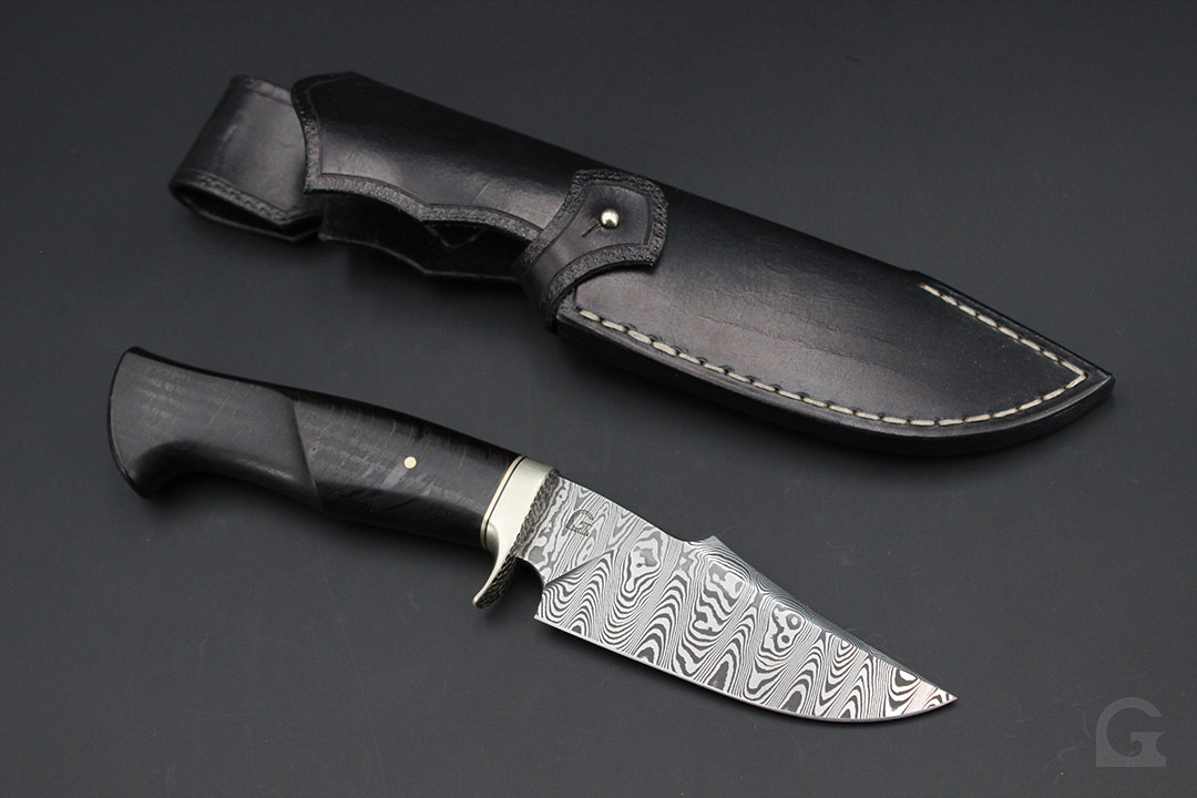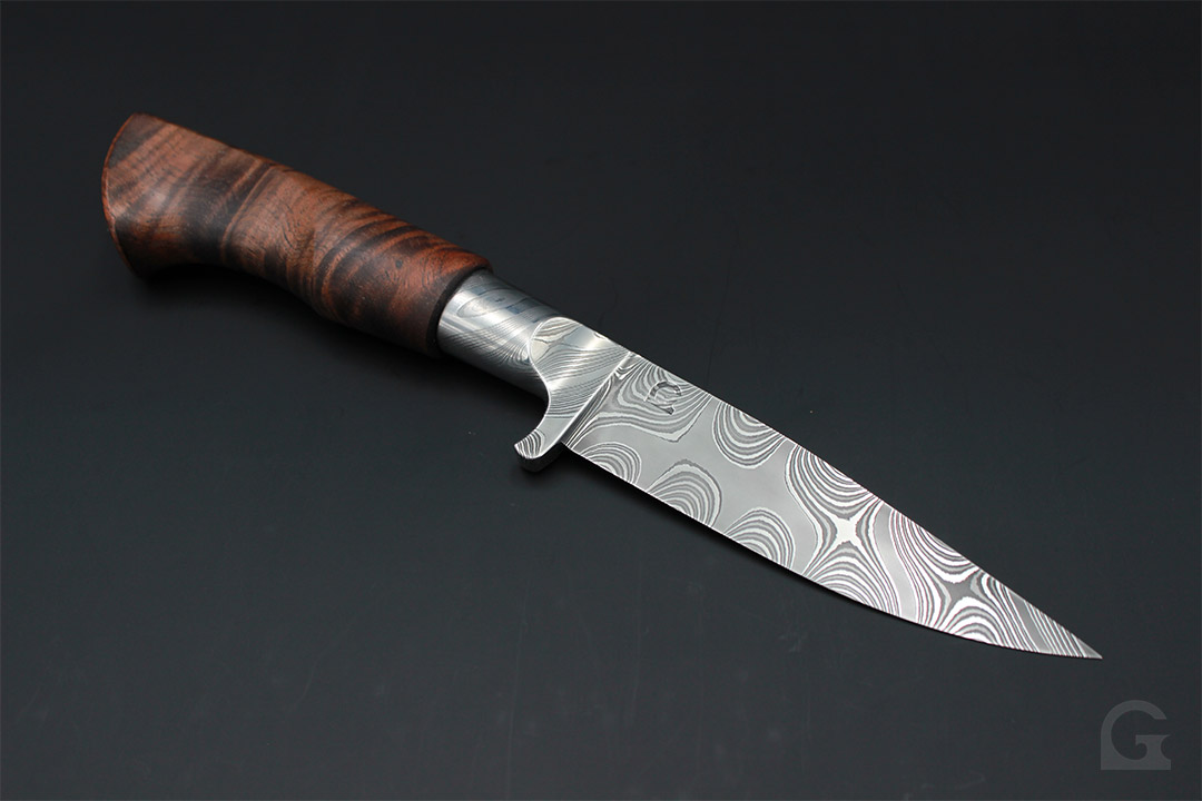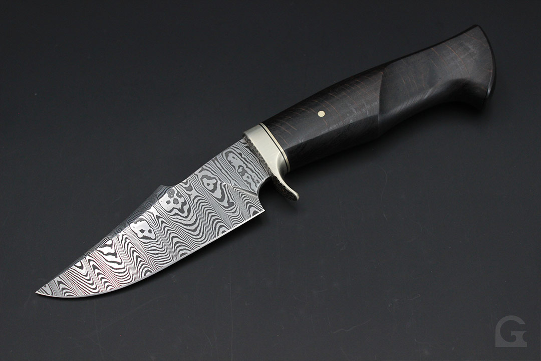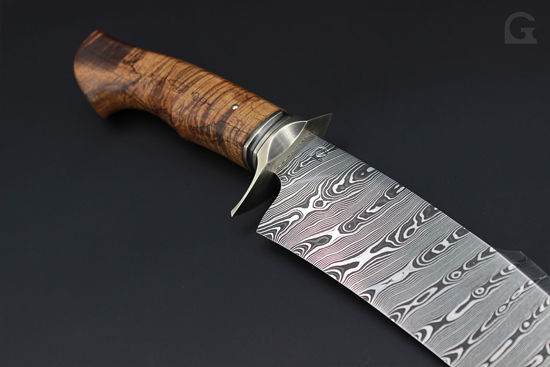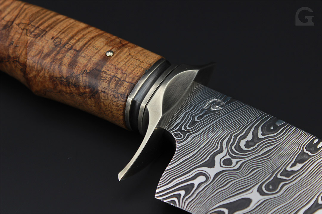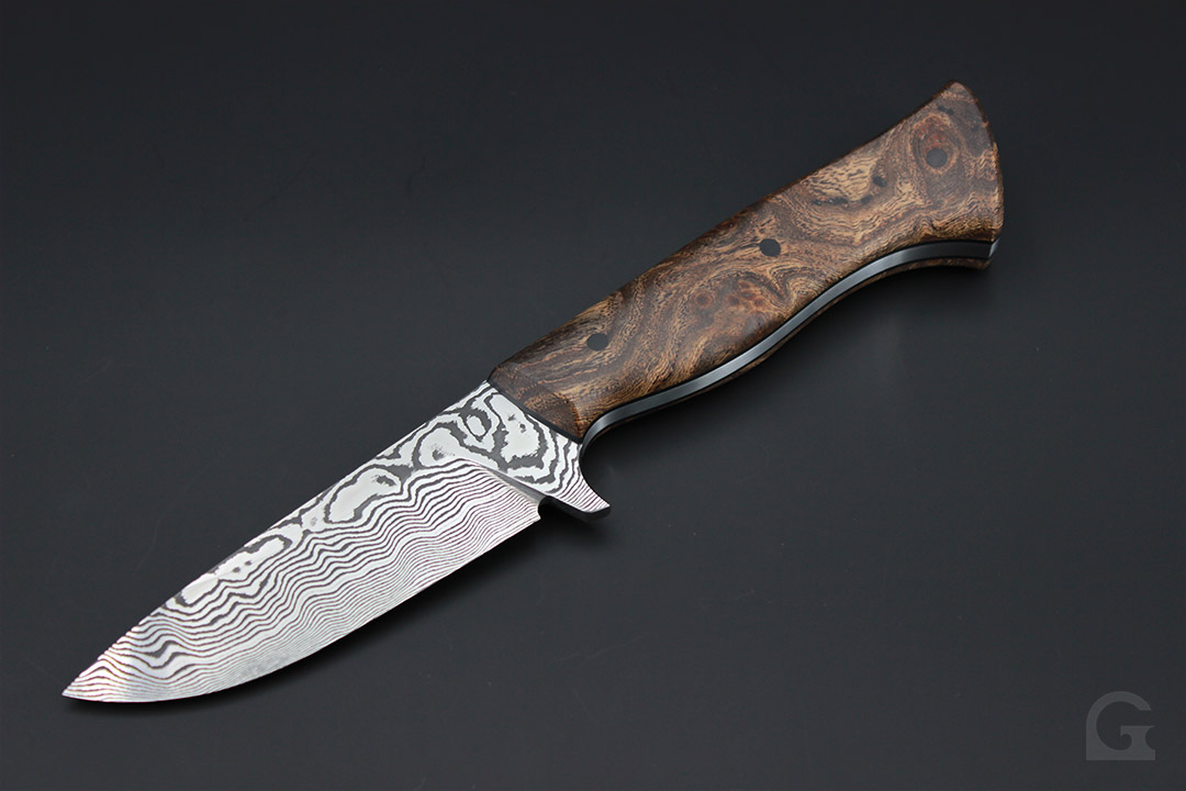 Damast • Buckeye Burl Griff • Neusilberfrontkappe