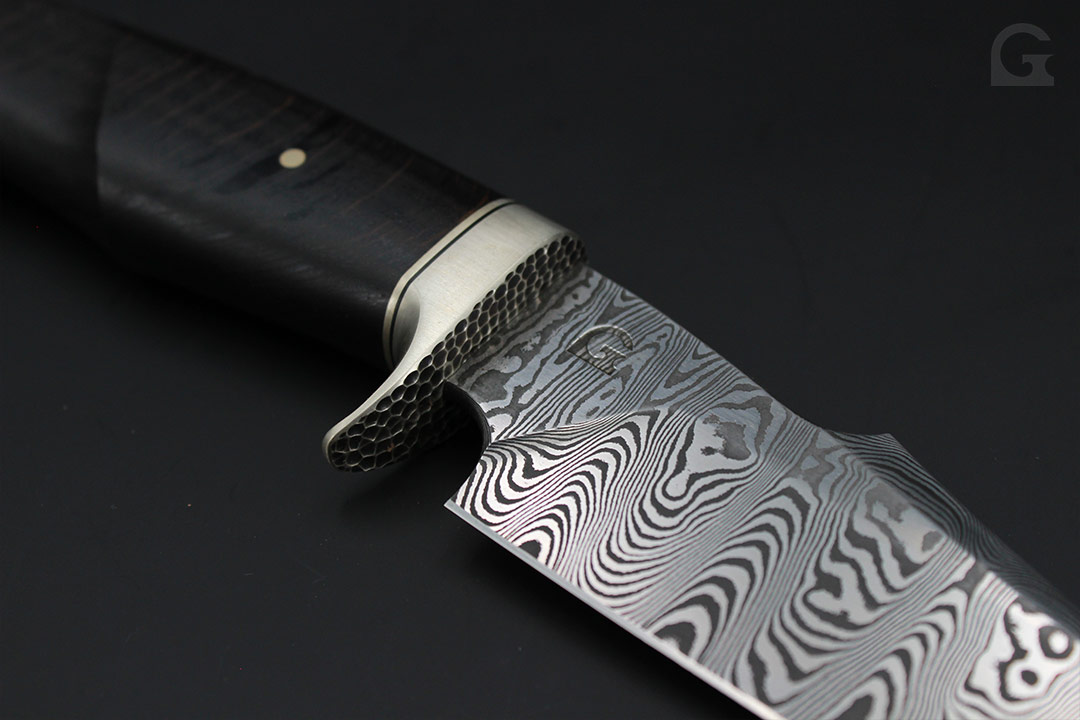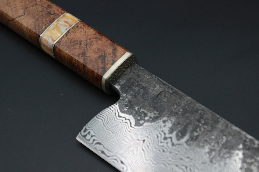 Damast • Gestockter Eichengriff • Mammutbackenzahneinlage